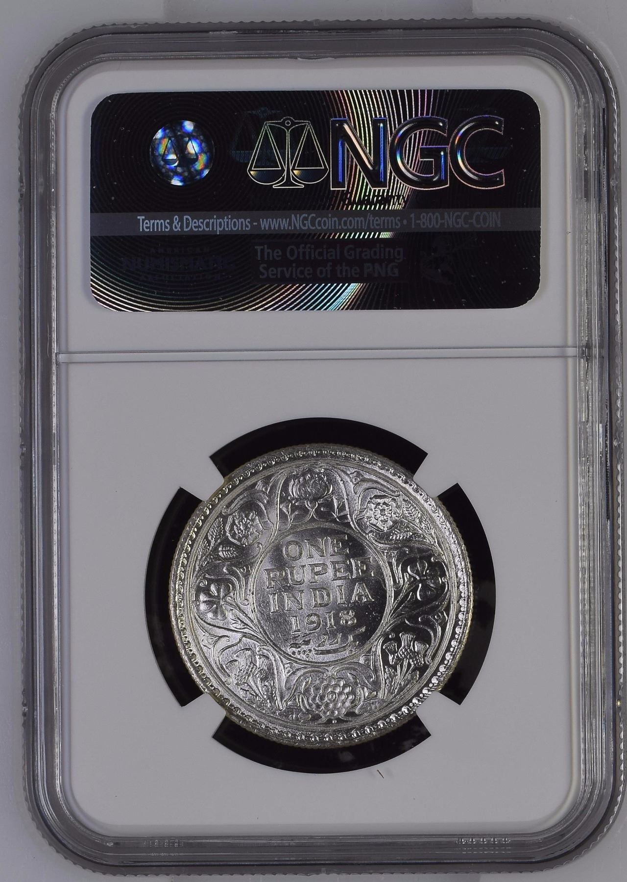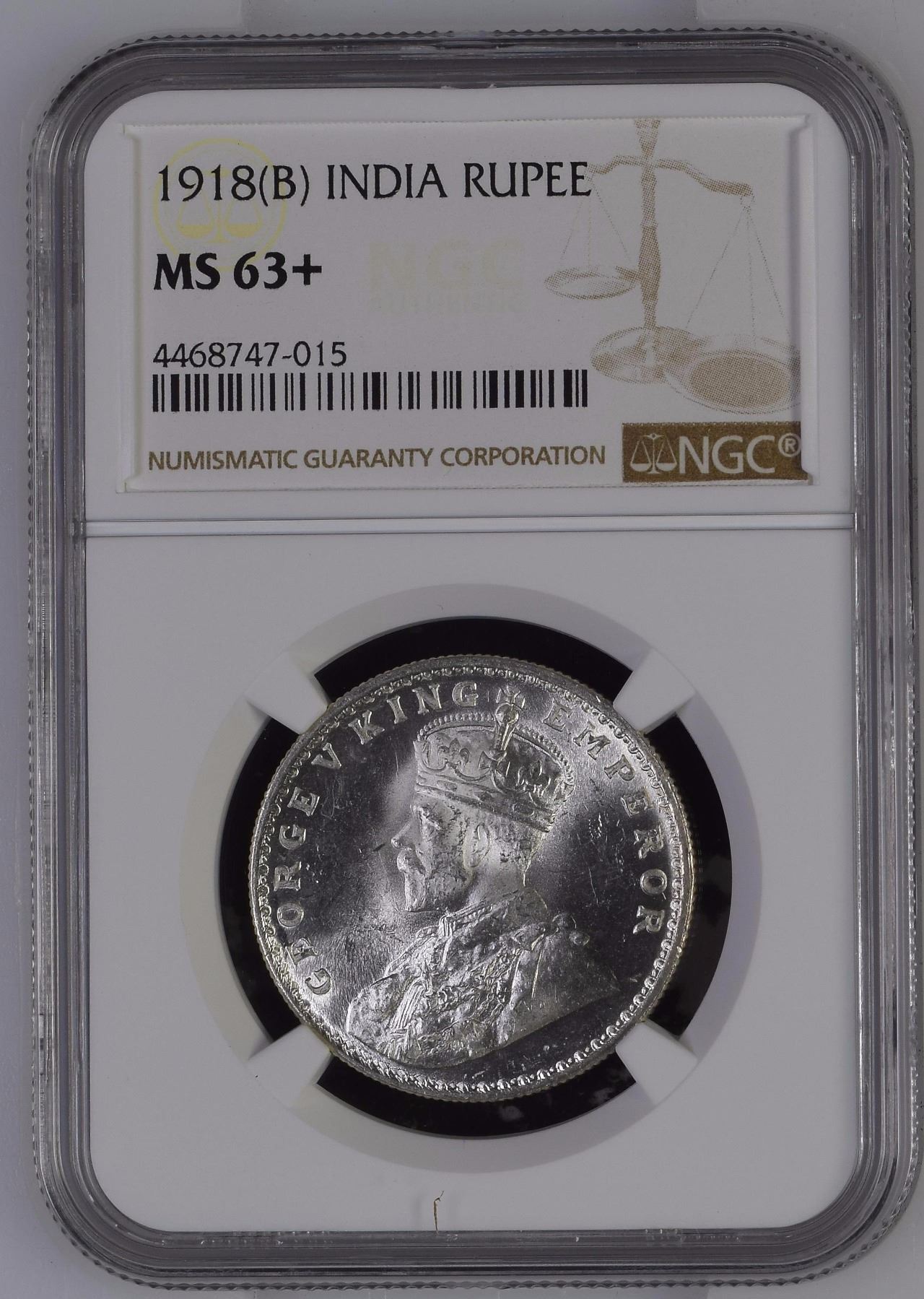 1918 B India Rupee NGC MS63+ *ONLY 1 GRADED*