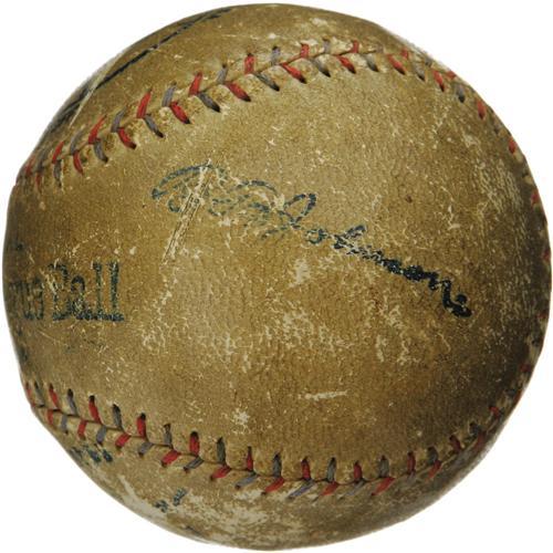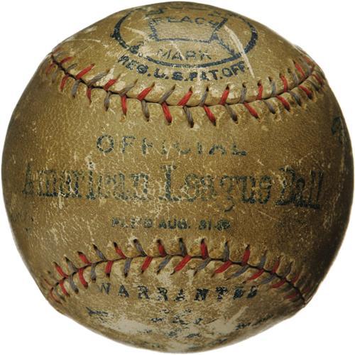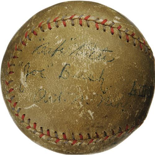 <B>1918 Boston's Best Pitchers Signed Baseball with Babe Ruth.</B></I> Unique and thrilling trio of signatures is found on the side panel of an OAL (Johnson) ball, quite possibly signed at Fenway Park during the World Series. We are led to this supposition by the appearance of Art Nehf, the Braves' top hurler, who joins the young Babe and former Philadelphia Athletics star Bullet Joe Bush, the Red Sox pitchers who started Games One and Two of that Fall Classic. It would stand to reason that Nehf would have been in the stands as a spectator, and few other occasions would have brought these players from different Leagues together. We're quite confident of the 1918 date, as it was Bush's first with the Sox, and he appeared in only three games in 1919 before Ruth set sail for the Big Apple. Regardless of the actual circumstances surrounding the signing, the end result is a treasure unlike any we've seen. All other panels remain free of writing. The ball shows expected handling wear, but the autographs still project very well due to the strength of the fountain pen ink that created them. A very special opportunity for the serious Boston collector. <I>LOA from PSA/DNA. LOA from James Spence Authentication.</B></I><BR><BR><b>Shipping:</b> Balls, Pucks, etc., Small (<a target="_blank" href="http://www.heritageauctions.com/common/shipping.php">view shipping information</a>)