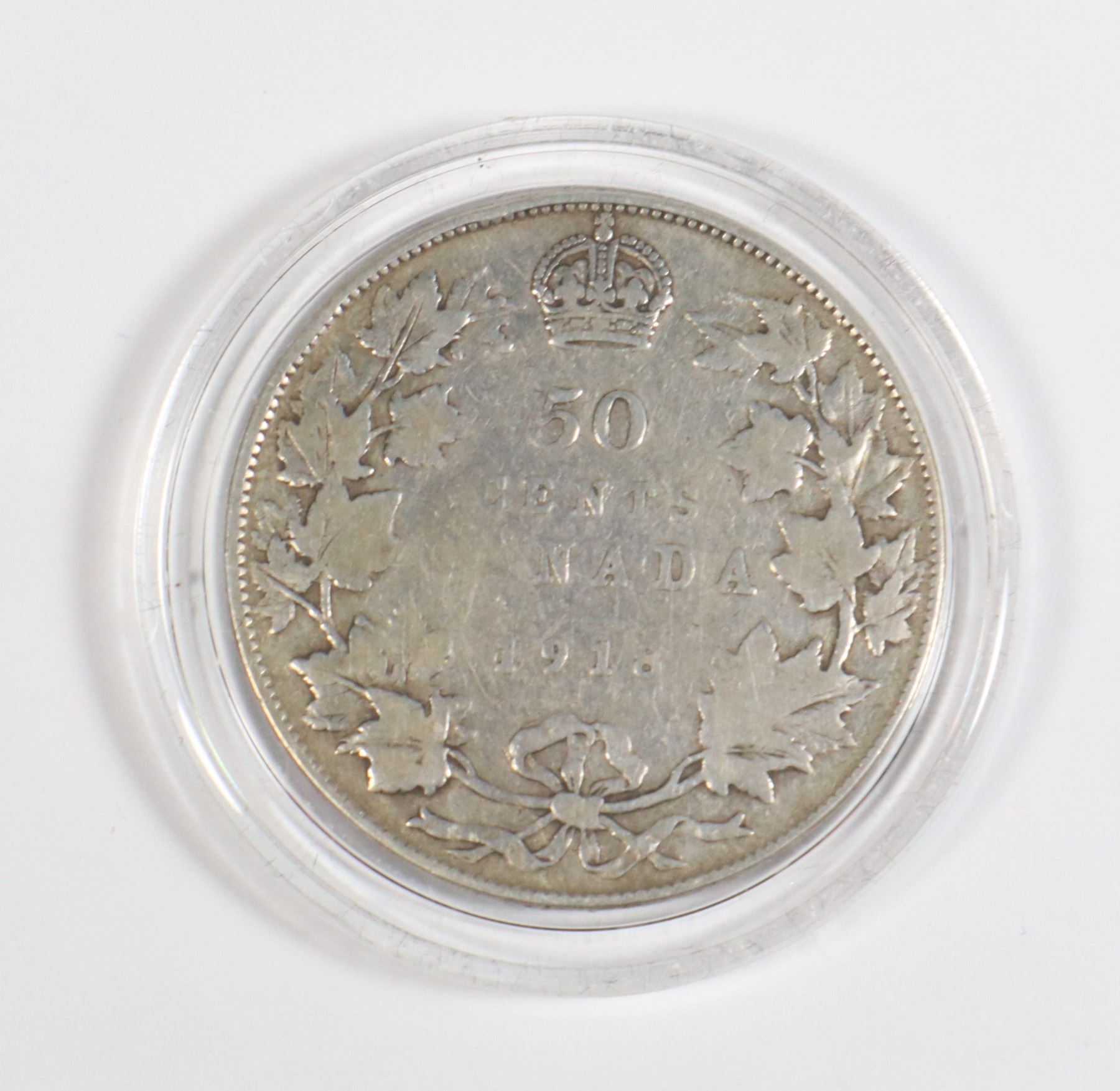 1918 CANADA HALF DOLLAR 92.5% SILVER IN CAPSULE