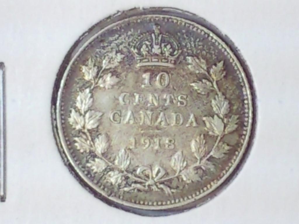 1918 CANADA SILVER 10 CENTS (EXTRA FINE)