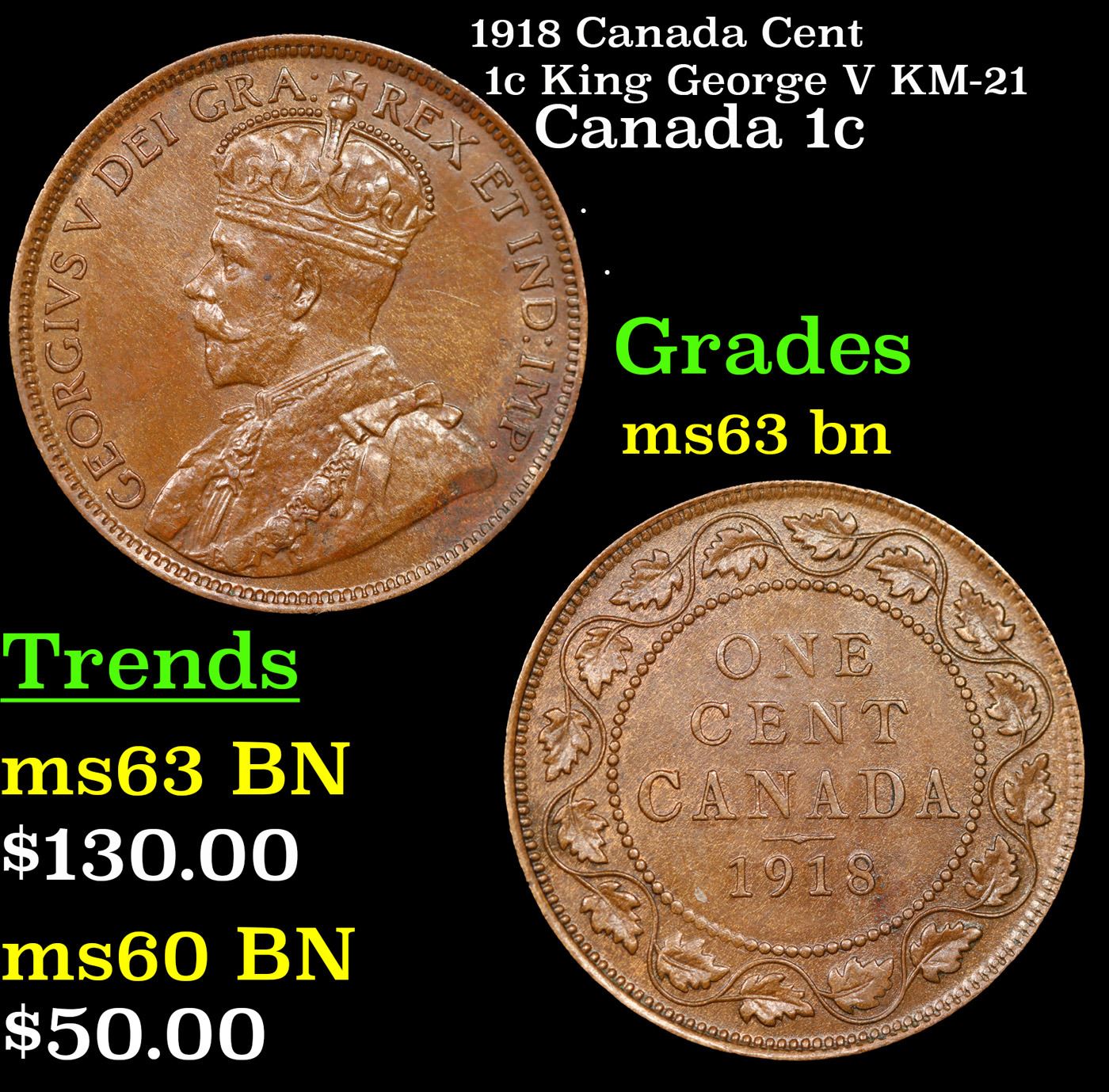 1918 Canada Cent 1c King George V KM-21 Grades Select Unc BN.