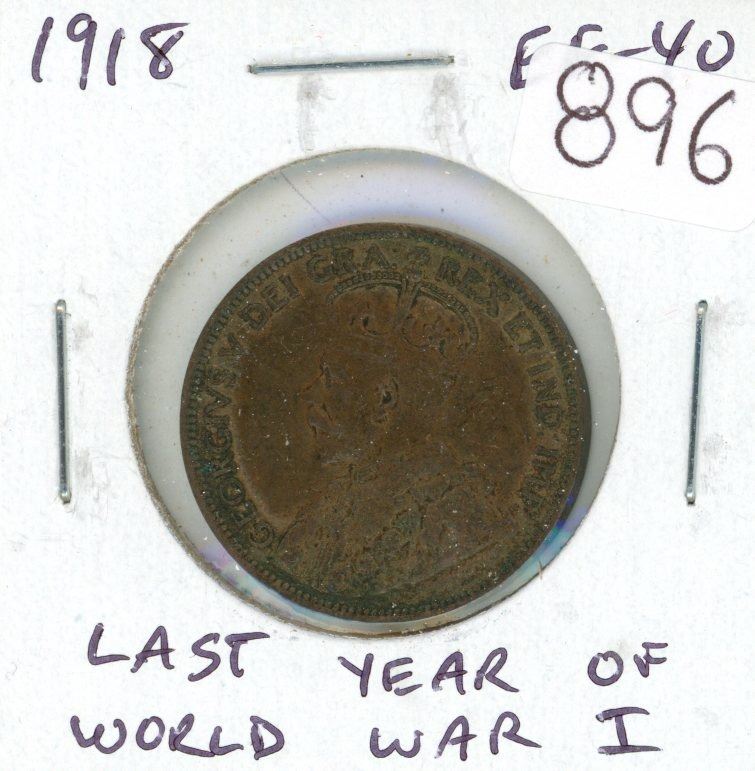 1918 Canadian George V Large Cent. Last year of World War I. EF-40.