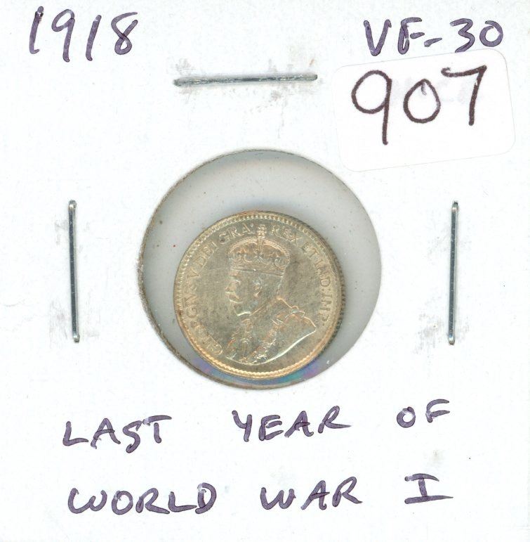 1918 Canadian George V Silver 5 Cents. The last year of World War I. VF-30. Nice.