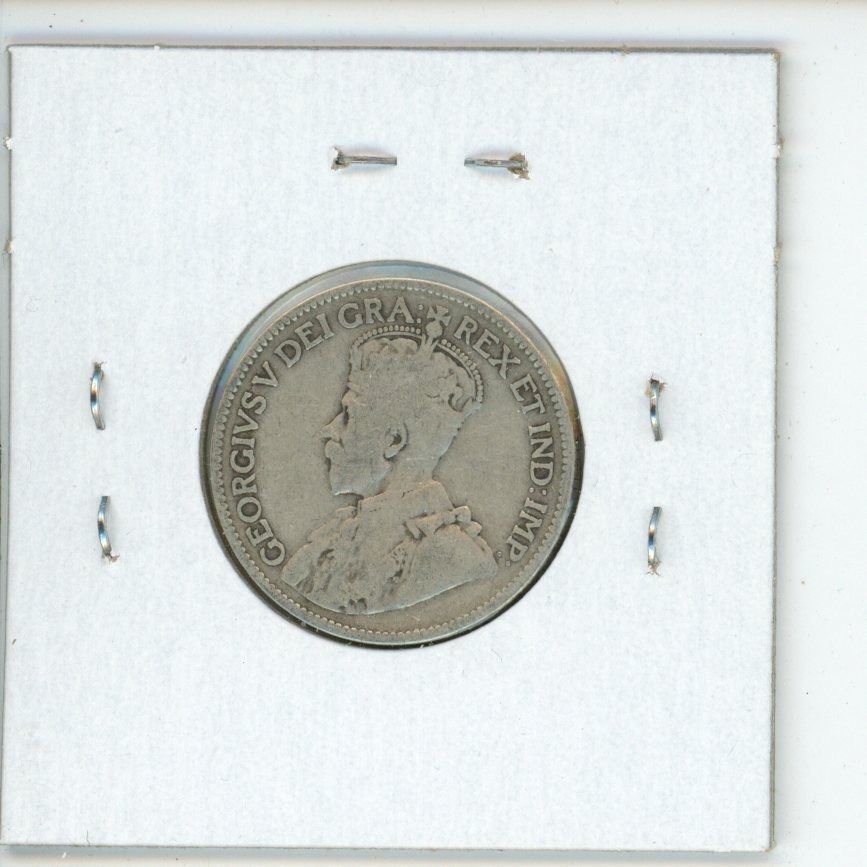 1918 Canadian Silver 25 Cents. Minted during the last year of World War I. VG-8.