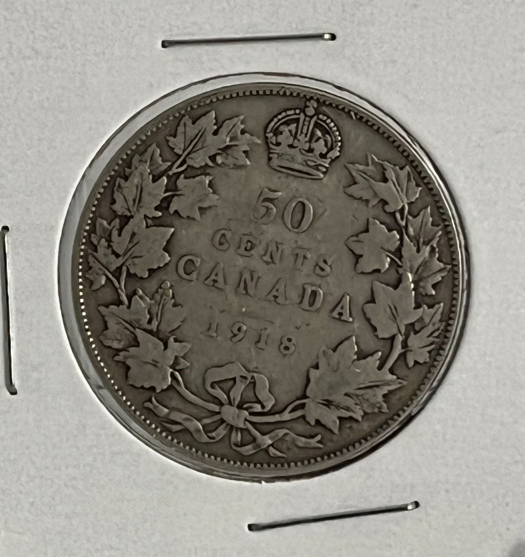 1918 Canadian Silver 50 Cent Coin