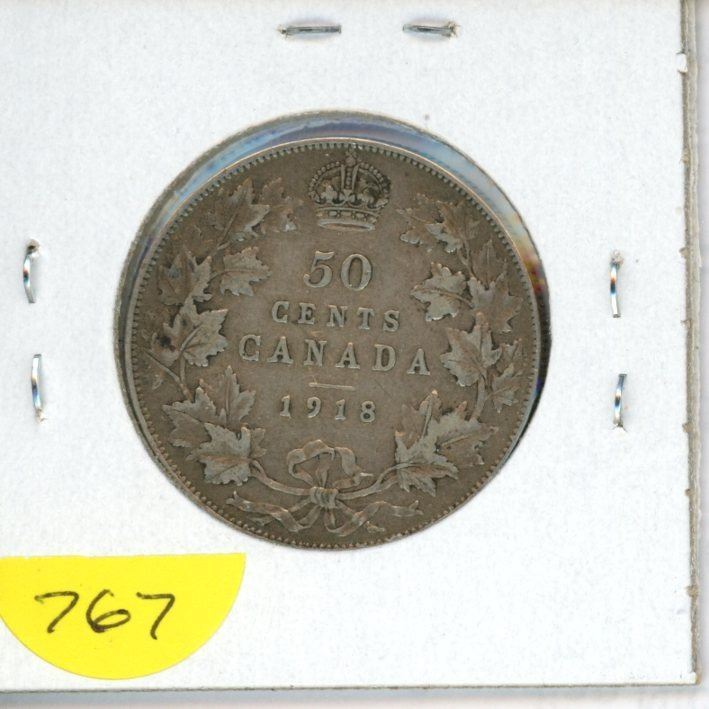 1918 Canadian Silver 50 Cents. The last year of World War I. VF-20. Nice.