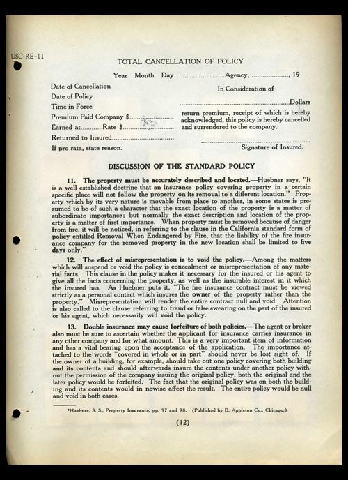 Scarce original collection page on the reverse of a real estate course manual; 15 scarce early pieces