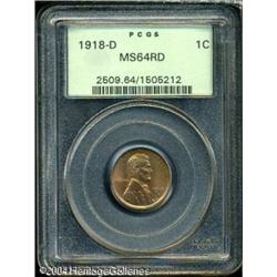 1918-D 1C MS64 Red PCGS. This meticulously struck <B>1918-D 1C MS64 Red PCGS.</B></I> This meticulously struck and lustrous near-Gem has gold and rose hues with a few thin streaks of deeper color on each side.<BR><I>From The Dennis Dewart Collection.</B></I> <BR><BR><B>Important notice:</B> Heritage usually auctions material at the rate of 200-250 lots per hour. On some occasions eBay Live bid software or the Internet may not be able to keep up with the pace of the auction. We recommend placing a realistic absentee bid now as insurance to avoid disappointment. Occasionally the auctioneer may eliminate or reject an eBay Live bid, and the auctioneer may also reopen a lot after the close of the eBay live bidding (usually because we missed an audience bid), and may reject your bid even if it shows you as the winning bidder. By bidding via eBay Live, you agree that Heritage may award the lot to another bidder at its sole discretion under the circumstances described above or any other reasonable circumstances. Since eBay bids are not shown to us until we open the lot on the floor, we treat those bids just like floor bids. In most cases the floor responds before the eBay bid is presented to us, due to Internet lag time, so for consistency we have made it a policy that floor bids are always considered first over tie eBay live bids. Also please note that all Heritage lots purchased through eBay Live carry a 20% Buyer's Premium. Please make sure you read the Terms and Conditions before you bid. This lot is being auctioned in conjunction with a live floor auction by Heritage Galleries & Auctioneers. All final auction and invoice information will be supplied by Heritage Galleries & Auctioneers, and all other information should be considered preliminary. Lot:5150