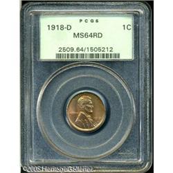 <B>1918-D 1C MS64 Red PCGS.</B></I> This meticulously struck and lustrous near-Gem has gold and rose hues with a few thin streaks of deeper color on each side. Population: 89 in 64, 34 finer (1/05). Lot:5448