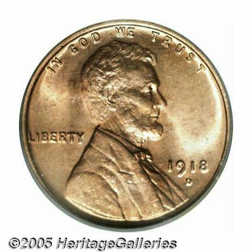 <B>1918-D<1C> MS66 Red PCGS.</B></I> As is the case with many early branch mint Lincolns, the substantial mintage (more than 47.8 million pieces) of the 1918-D has no bearing on the coin's availability in Gem and better condition. This lustrous golden-red example is expectantly sharp (based on the grade) and displays tinges of lilac patina on the reverse. Population: 6 in 66, 1 finer (3/05).<BR><I>From The Tom Mershon #2 All-Time PCGS Registry Set of Lincoln Wheat Cents.</B></I>