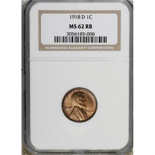 <B>1918-D 1C MS62 Red and Brown NGC.</B></I> NGC Census: (9/115). PCGS Population (3/161). Mintage: 47,830,000. Numismedia Wsl. Price for NGC/PCGS coin in MS62: $81. (#2508)<BR><BR><B>Coin Engraver:</B> Victor D. Brenner<BR><BR><b>Shipping:</b> Coins & Currency (<a target="_blank" href="http://www.heritageauctions.com/common/shipping.php">view shipping information</a>)