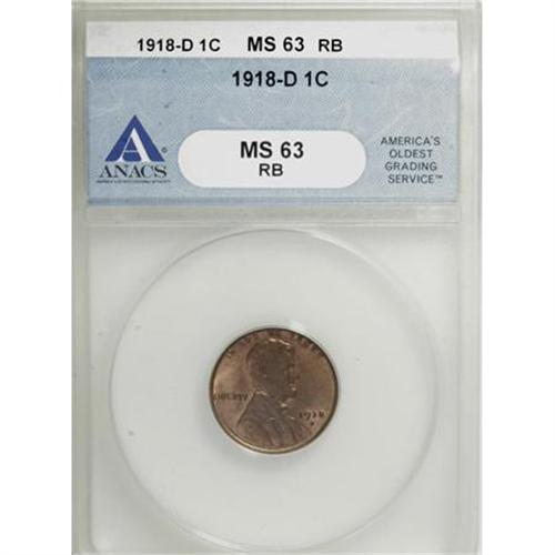 <B>1918-D 1C MS63 Red and Brown ANACS.</B></I> . NGC Census: (22/93). PCGS Population (52/111). Mintage: 47,830,000. Numismedia Wsl. Price for NGC/PCGS coin in MS63: $108. (#2508)<BR><BR><B>Coin Engraver:</B> Victor D. Brenner<BR><BR><b>Shipping:</b> Coins & Currency (<a target="_blank" href="http://www.heritageauctions.com/common/shipping.php">view shipping information</a>)