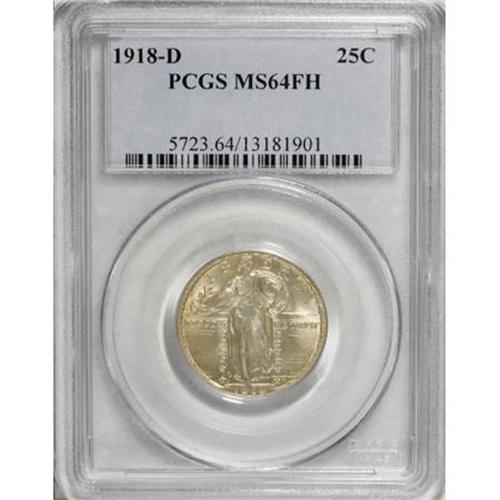 <B>1918-D 25C MS64 Full Head PCGS.</B></I> A scarce and underrated issue among Type Two quarters. This piece is fully detailed on the head of Liberty and close to full Gem quality. The lustrous surfaces are covered with a light accent of golden toning.<BR><BR><B>Coin Engraver:</B> Hermon A. MacNeil<BR><BR><b>Shipping:</b> Coins & Currency (<a target="_blank" href="http://www.heritageauctions.com/common/shipping.php">view shipping information</a>)