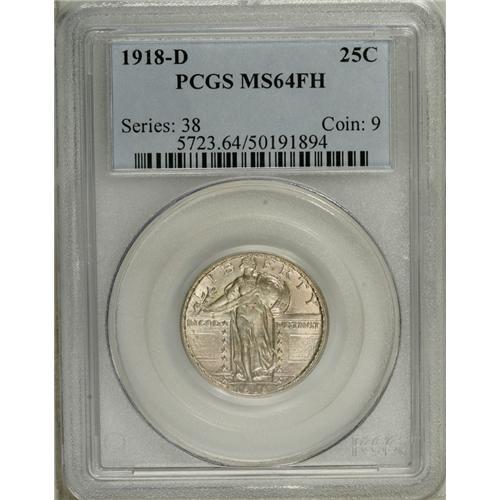 1918-D 25C MS64 Full Head PCGS. Well struck except for