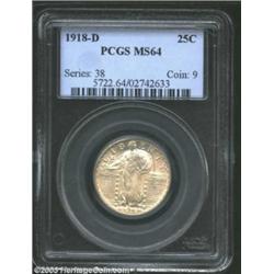1918-D 25C MS64 PCGS. The date and Liberty's head are both softly struck, along with the A in STATES