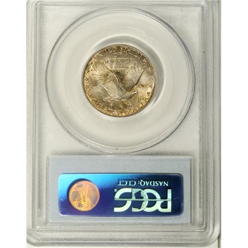 <B>1918-D 25C MS65 PCGS.</B></I> The silver-gray centers merge into glints of amber, gold, and ice-blue elsewhere, with brilliant luster. While the head details are somewhat soft, the shield rivets are all present, and the date is bold. An attractive coin, and likely an underrated one as well. Population: 46 in 65, 18 finer (1/07).<BR><BR><b>Shipping:</b> Coins & Currency (<a target="_blank" href="http://www.heritageauctions.com/common/shipping.php">view shipping information</a>)