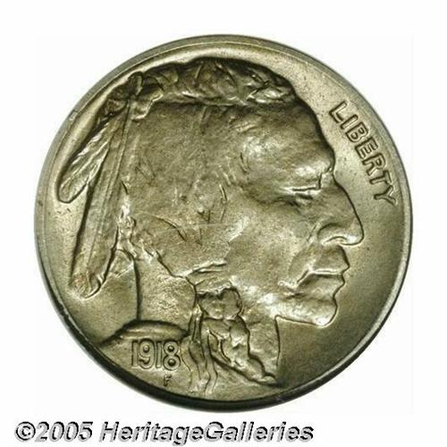 <B>1918-D<5C> MS65 NGC.</B></I> Most Uncirculated survivors of this early D-mint are disqualified from potential Gem status by poor striking details. This lovely, satiny example is tinged in golden patina and, while a trifle deficient on the Native American's braid, exhibits far better definition than is normally seen on an '18-D. Population: 21 in 65, 5 finer (4/05).