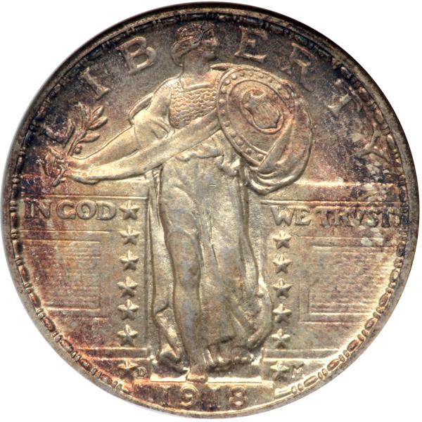 1918-D. ANACS graded MS-64 Full Head. A nice bold strike with lovely natural violet toning, the fields are decidedly lustrous.
