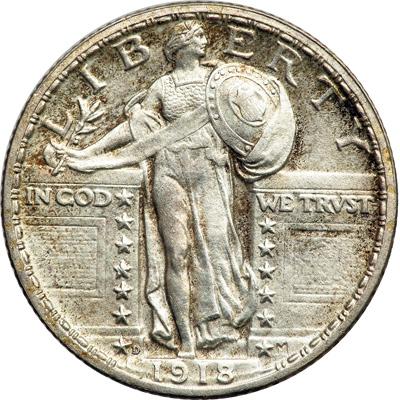 1918-D Liberty Standing Quarter Dollar. PCGS graded Genuine, altered surfaces. Our grade is MS-60+ with a full head. Scarce D-mint issue.