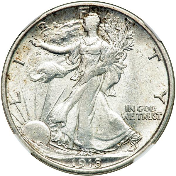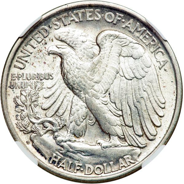 1918-D Liberty Walking Half Dollar. Improperly cleaned. Light toning with the head softly struck as usual. A nice looking coin.