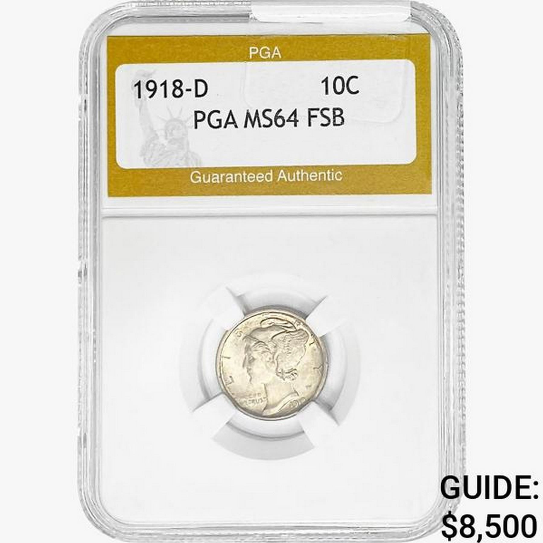 1918-D Mercury Silver Dime PGA MS64 FSB