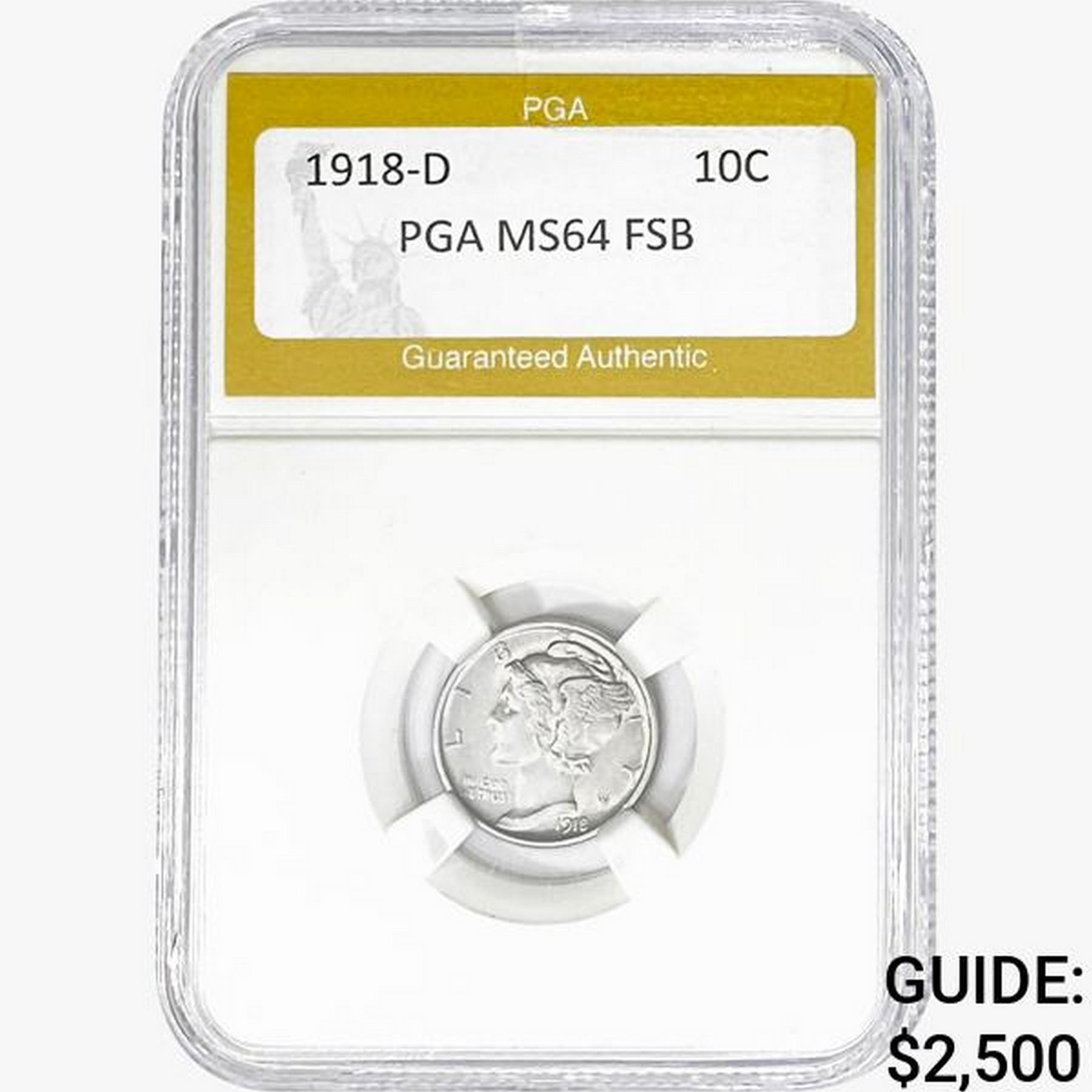 1918-D Mercury Silver Dime PGA MS64 FSB