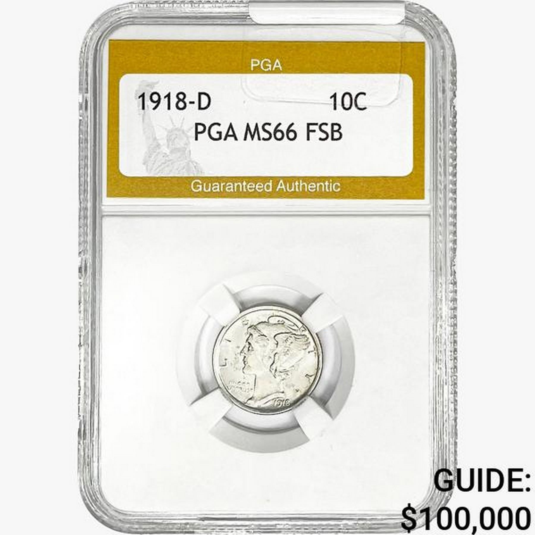 1918-D Mercury Silver Dime PGA MS66 FSB