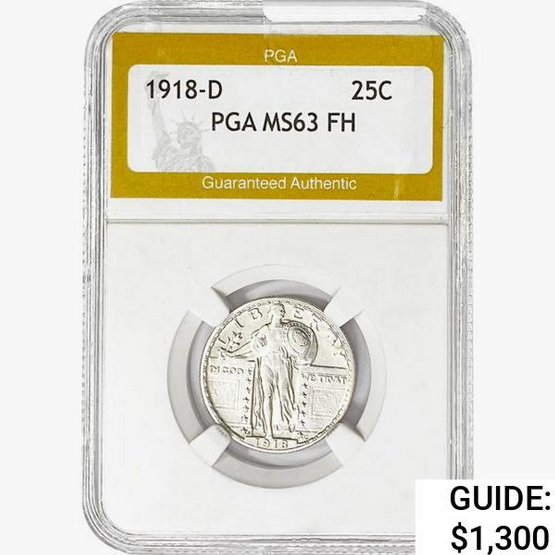 1918-D Standing Liberty Quarter PGA MS63 FH