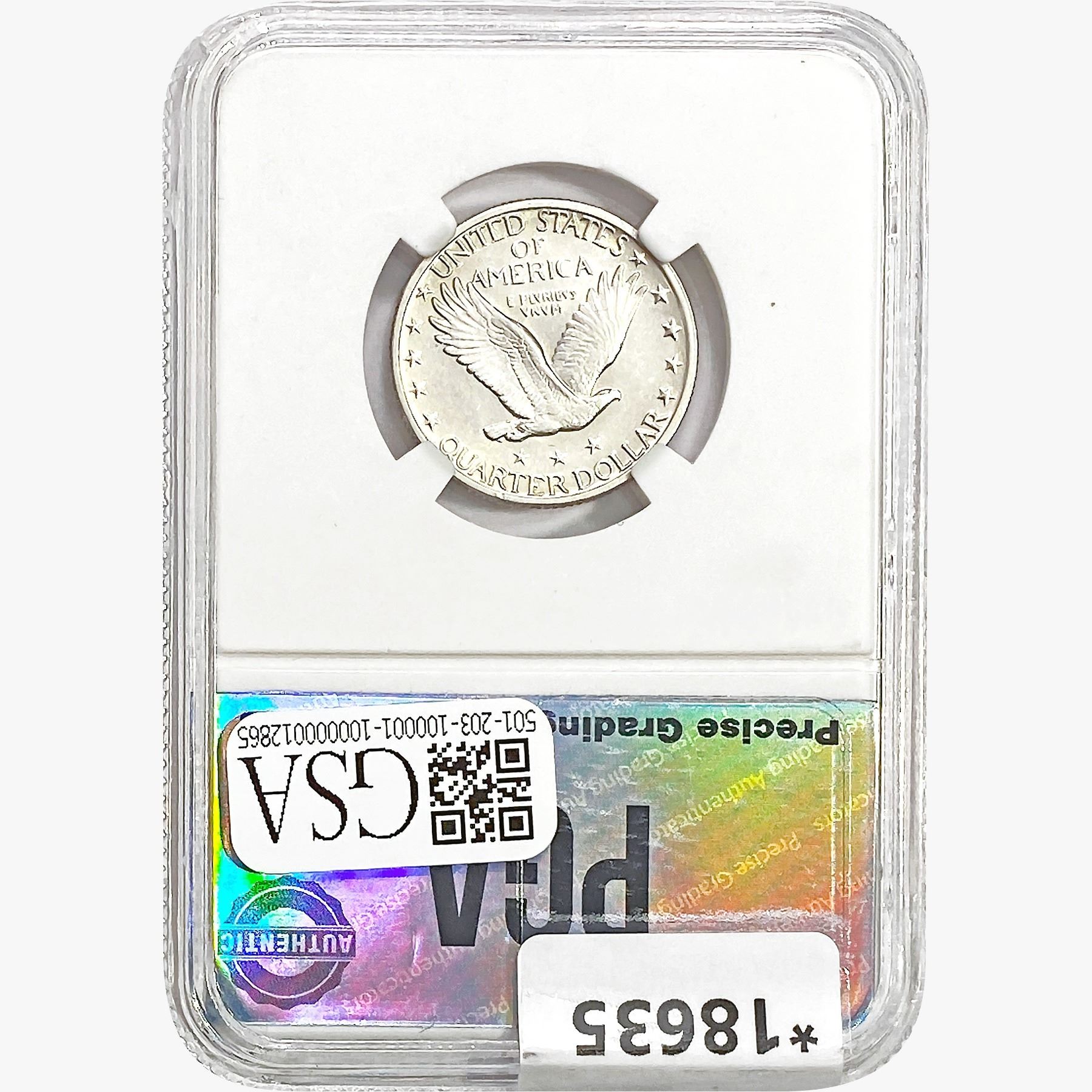 COINS AND CURRENCY LISTED IN GSA’S CATALOG AS GRADED AND ENCAPSULATED BY PCGS, NGC, ANACS, ICG, PCGS CURRENCY, PMG, PCGS BANKNOTE GRADING, CMC OR ANY OTHER THIRD-PARTY GRADING SERVICE ARE LIKEWISE SOLD “AS-IS” EXCEPT AS EXPRESSLY SET FORTH HEREIN. ALL THIRD-PARTY GRADING SERVICE GUARANTEES, INCLUDING AUTHENTICITY, ARE THE SOLE RESPONSIBILITY OF THE THIRD-PARTY GRADING SERVICE AND NOT WARRANTIES OR GUARANTEES OF GSA. BIDDERS SHOULD CONTACT THESE THIRD-PARTY GRADING SERVICES DIRECTLY WITH RESPECT TO ANY CLAIMS OR QUESTIONS THEY MAY HAVE CONCERNING THEIR GUARANTEES AND WARRANTIES. BIDDERS ACKNOWLEDGE AND AGREE THAT AUCTIONEER IS NOT BOUND BY OR LIABLE FOR ANY OPINION OR CERTIFICATION BY ANY THIRD-PARTY GRADING SERVICE. REMOVAL OF A PRODUCT FROM ITS PROTECTIVE CASING OR HOLDER OR ALTERATION OF ANY COIN HOLDER WAIVES ALL RIGHTS CONCERNING THE PRODUCT CONTAINED THEREIN.
