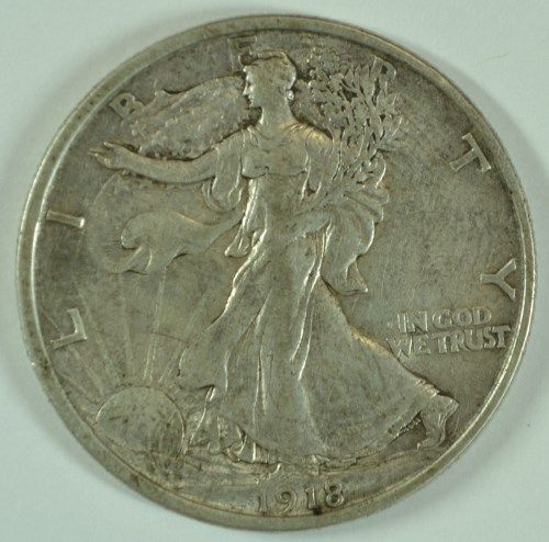 1918-D WALKING LIBERTY HALF DOLLAR, AU-50 ORIGINAL, VERY SCARCE COIN