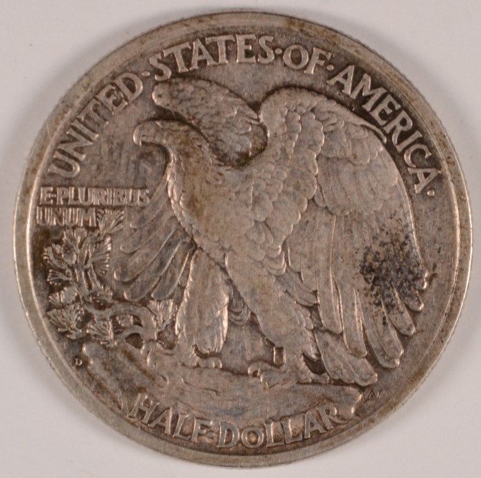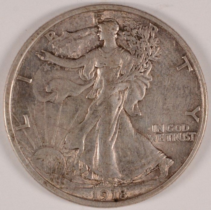 1918-D WALKING LIBERTY HALF DOLLAR, AU-50 ORIGINAL, VERY SCARCE COIN