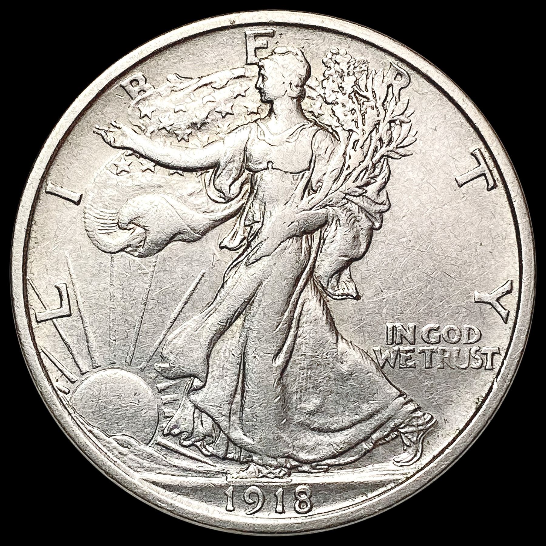 1918 D Walking Liberty Half Dollar NEARLY UNCIRCULATED