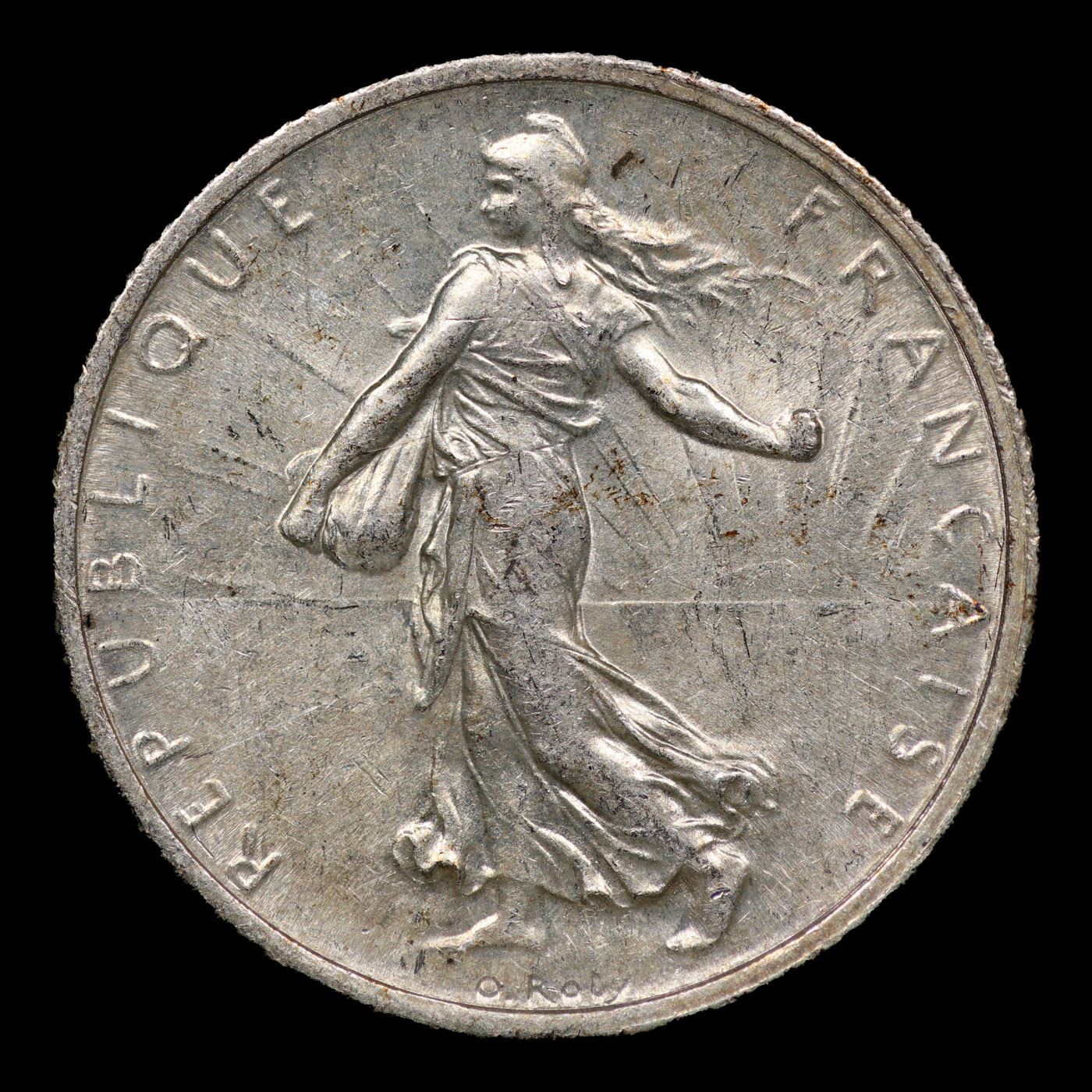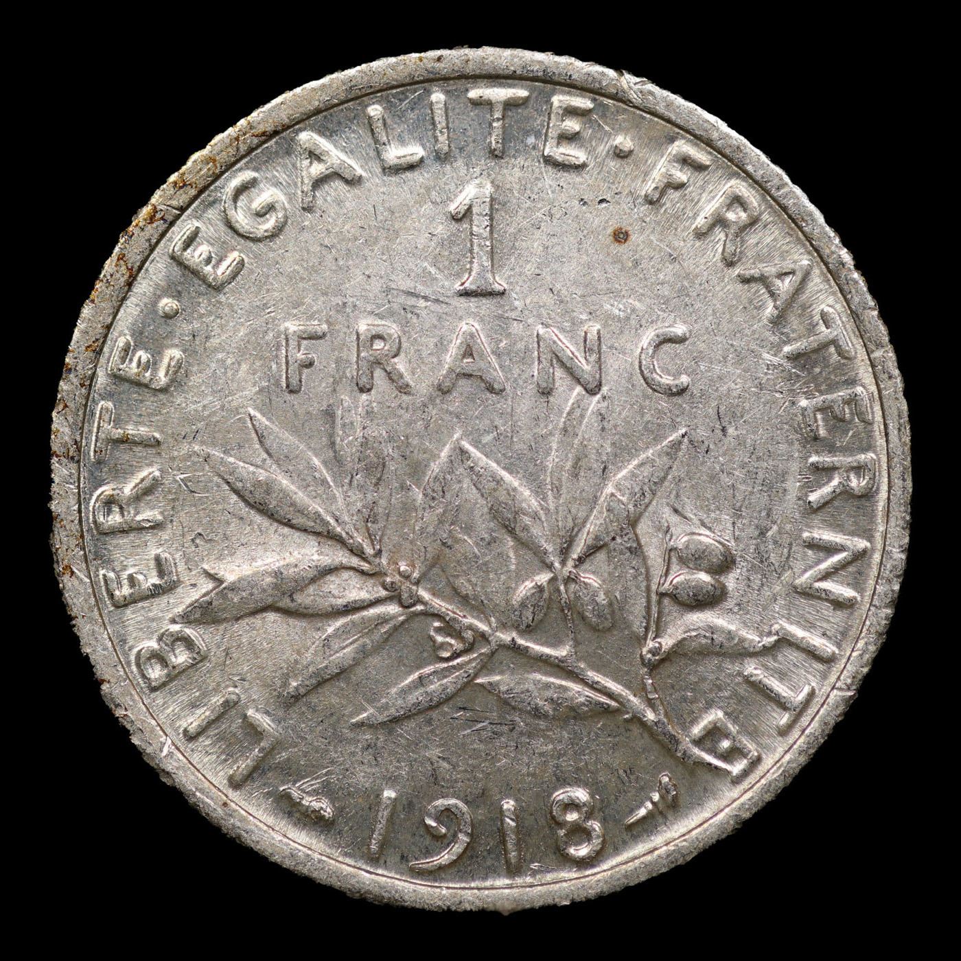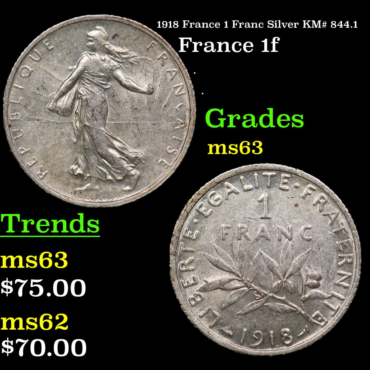 1918 France 1 Franc Silver KM# 844.1 Grades Select Unc.