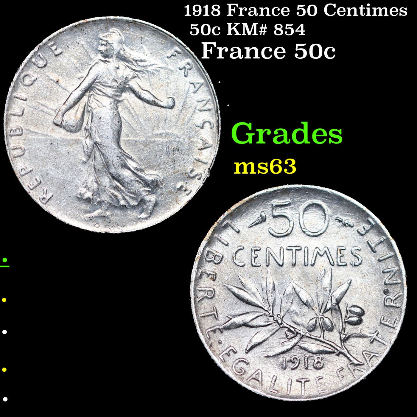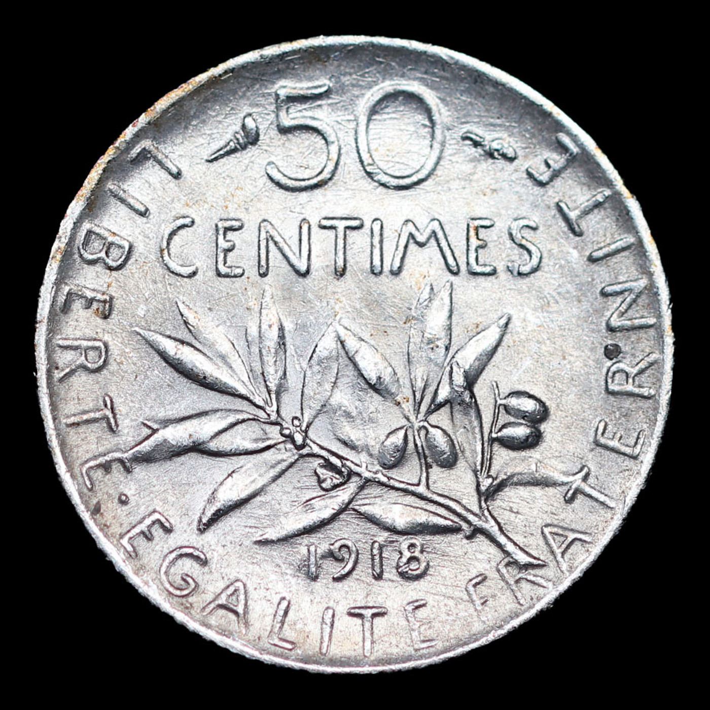 1918 France 50 Centimes 50c KM# 854 Grades Select Unc.
