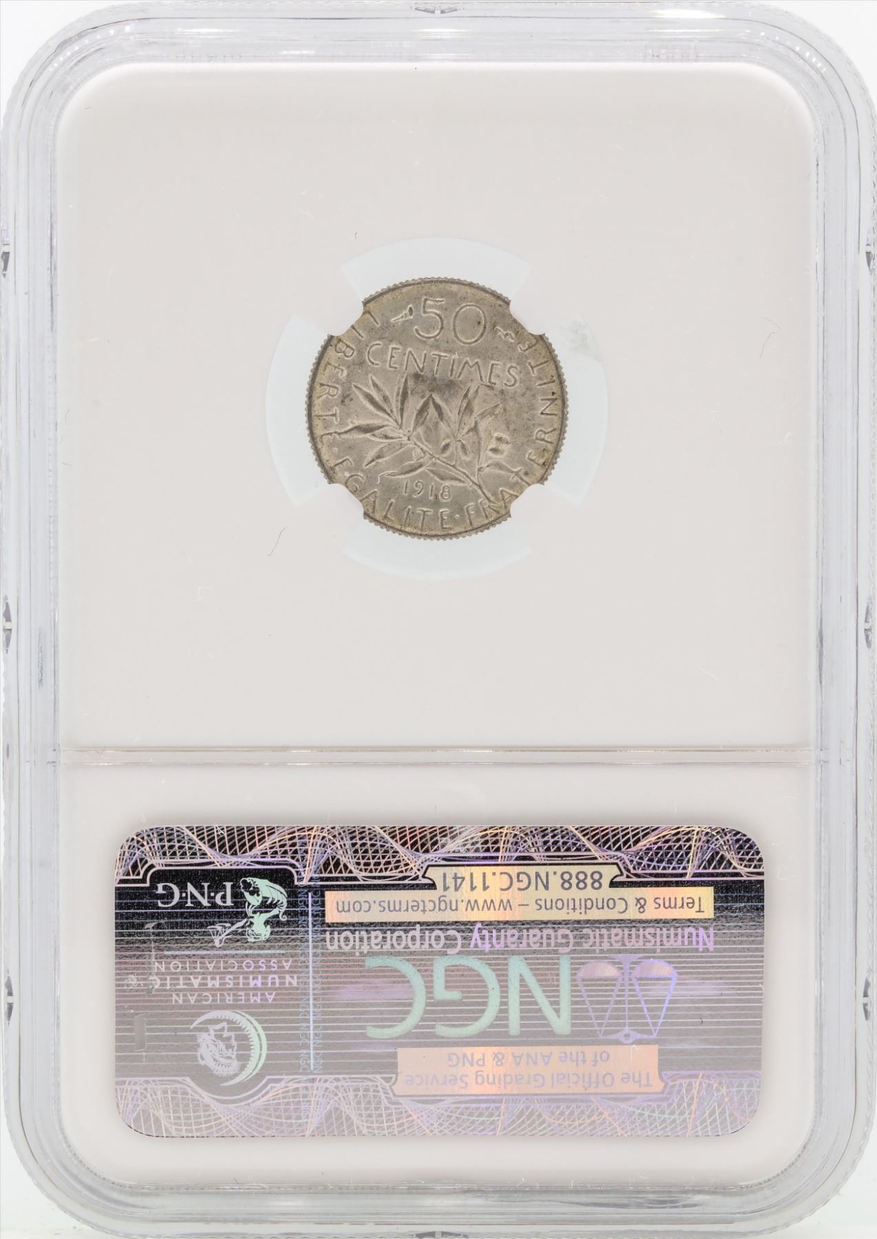 One 1918 France 50 Centimes Silver Coin NGC MS63.