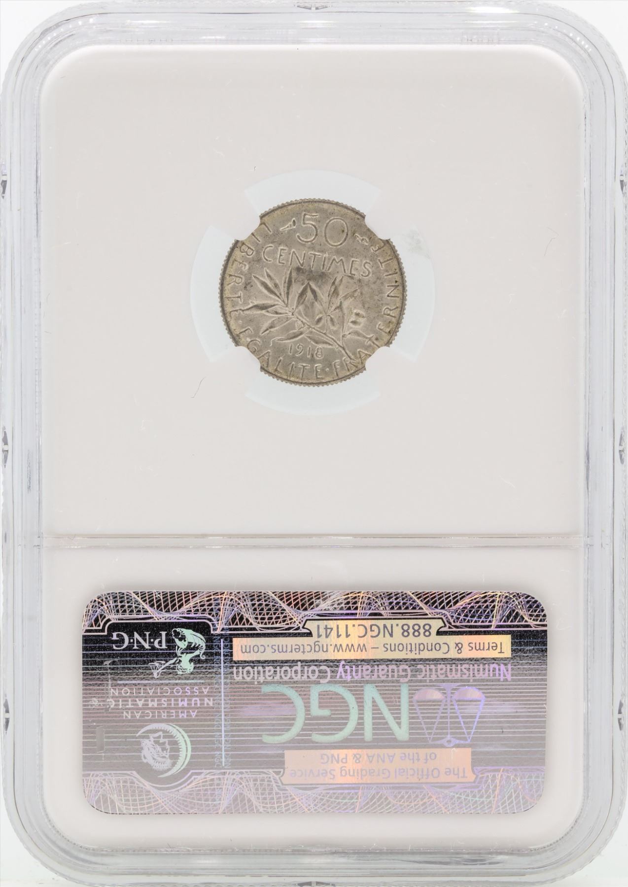 One 1918 France 50 Centimes Silver Coin NGC MS63.
