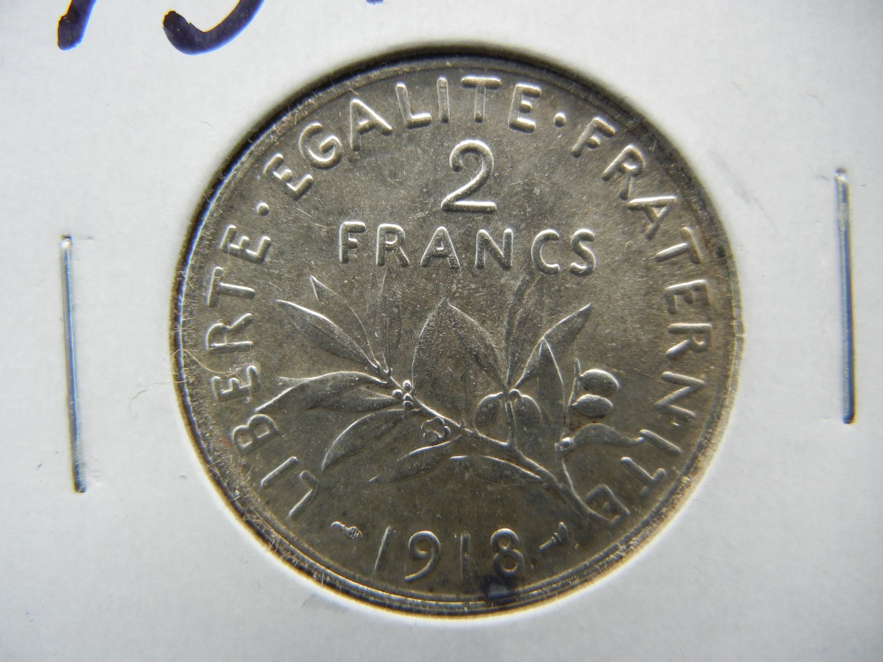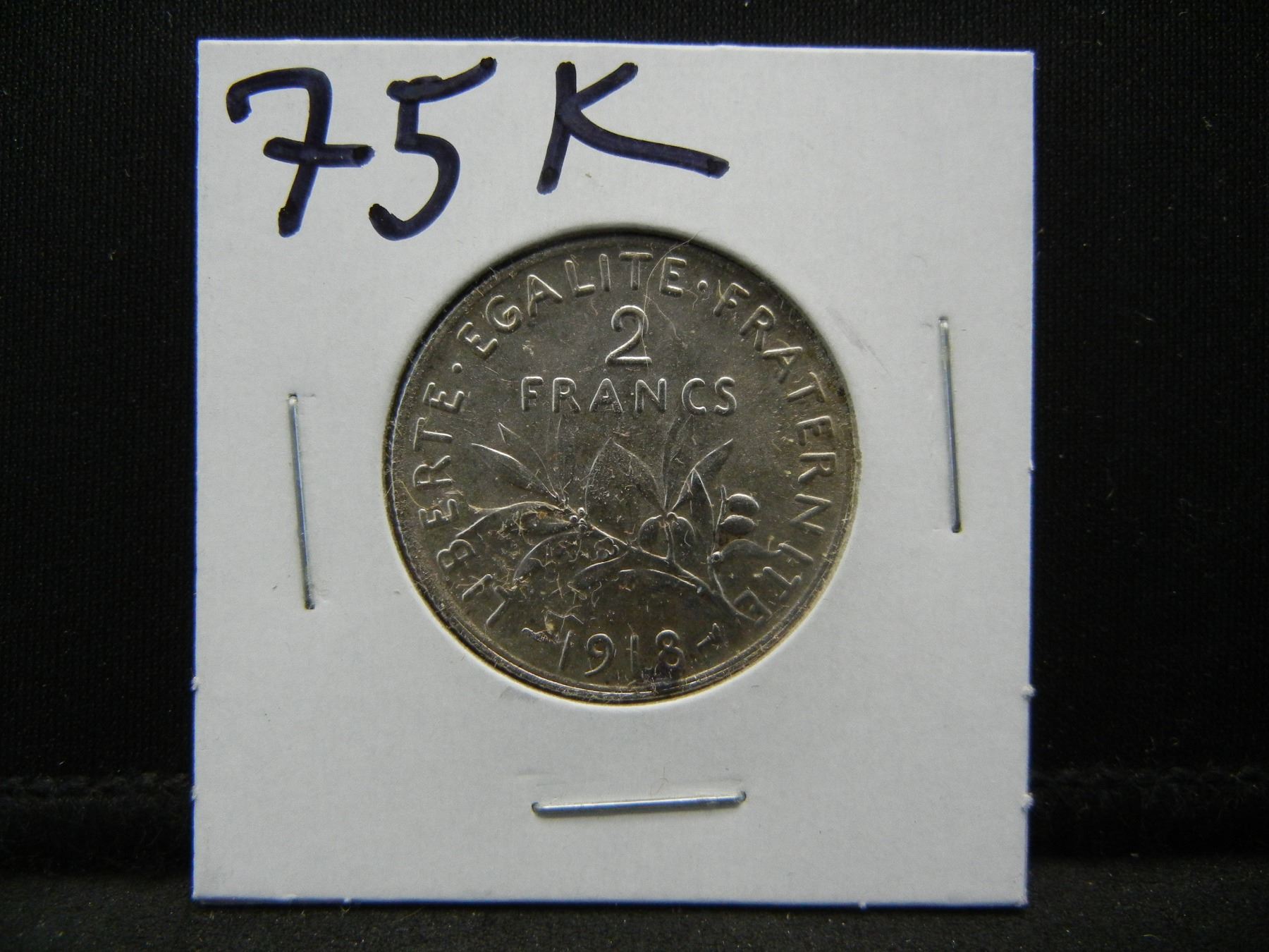 1918 France SILVER 2 Franc. BU