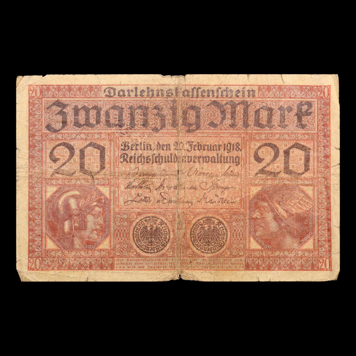 1918 Germanu 20 Mark Note P# 57 Grades vf, very fine.
