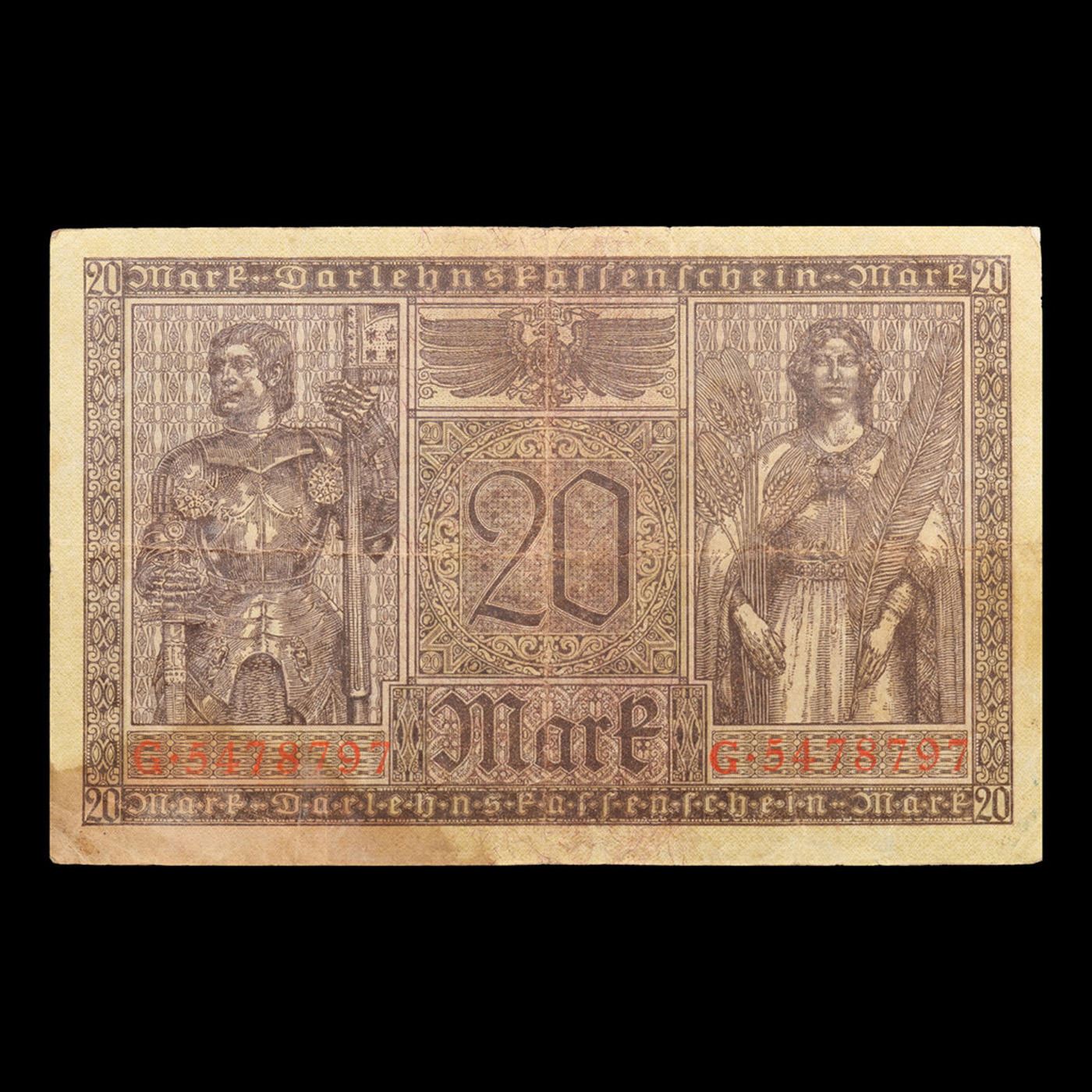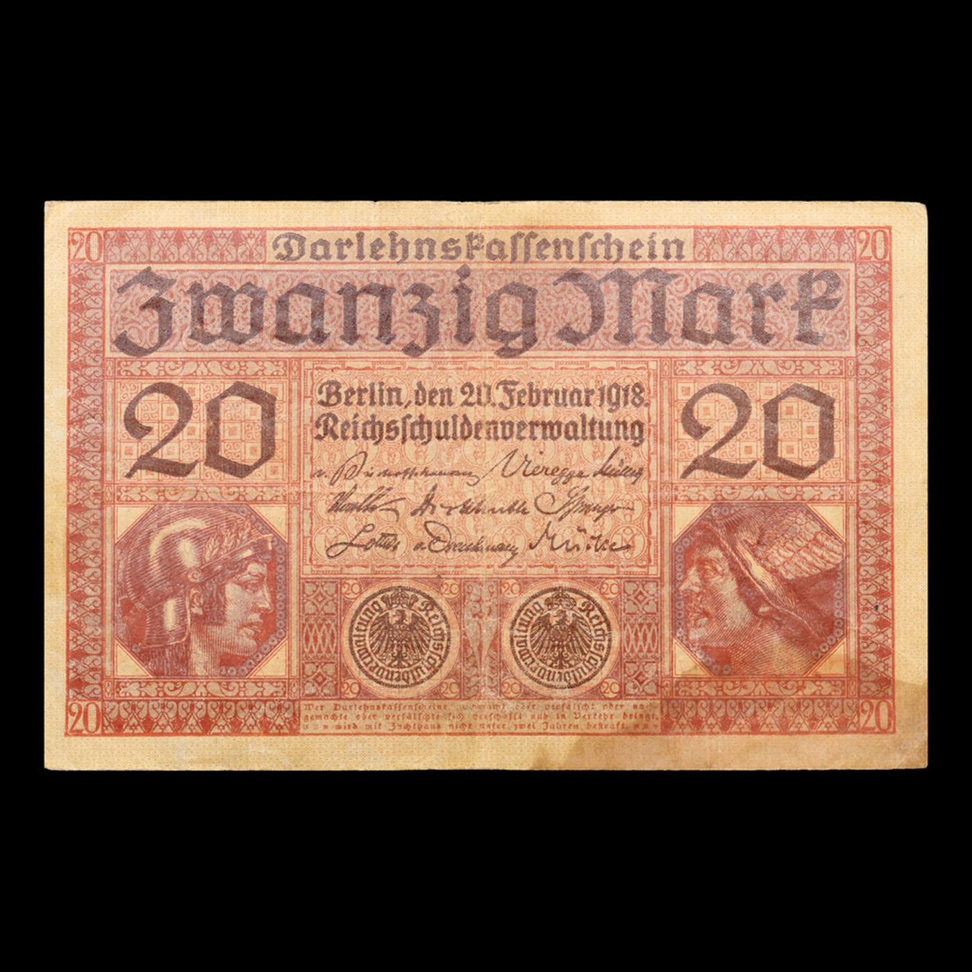 1918 Germanu 20 Mark Note P# 57 Grades xf.