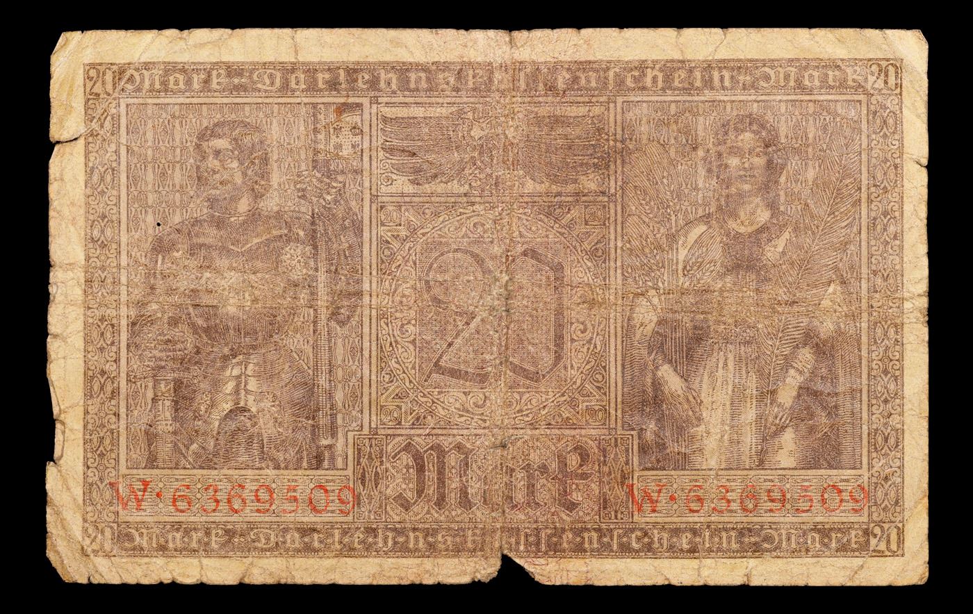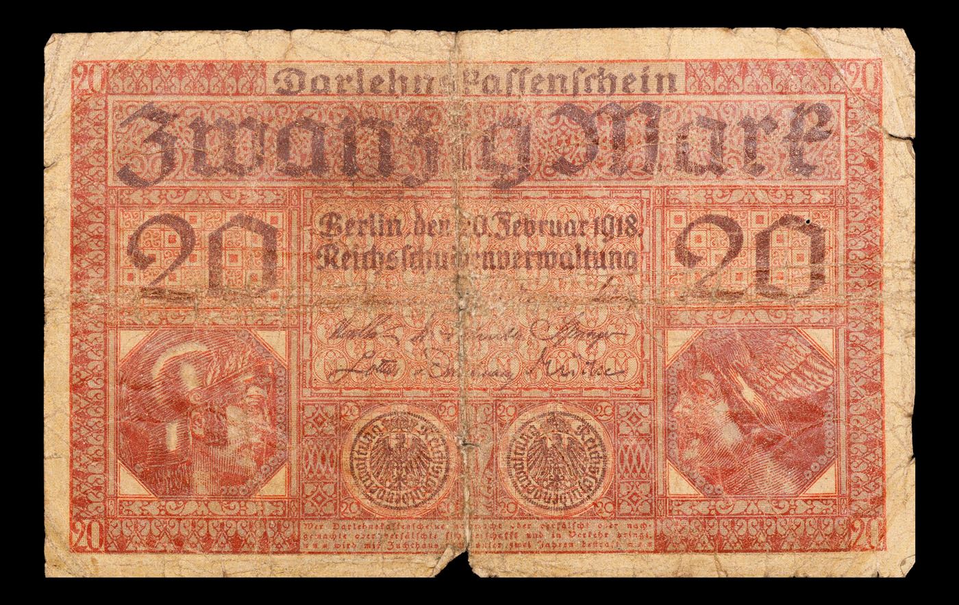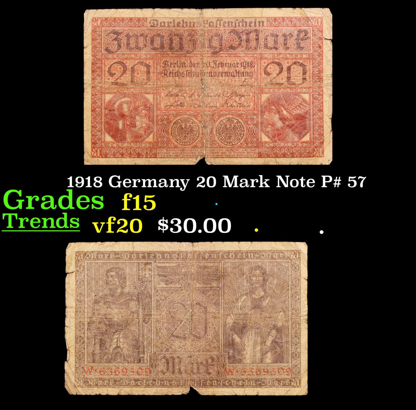 1918 Germany 20 Mark Note P# 57 Grades f+.