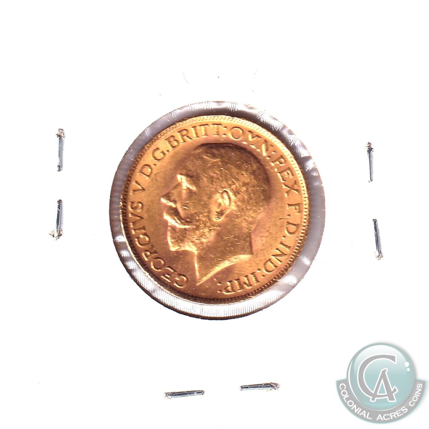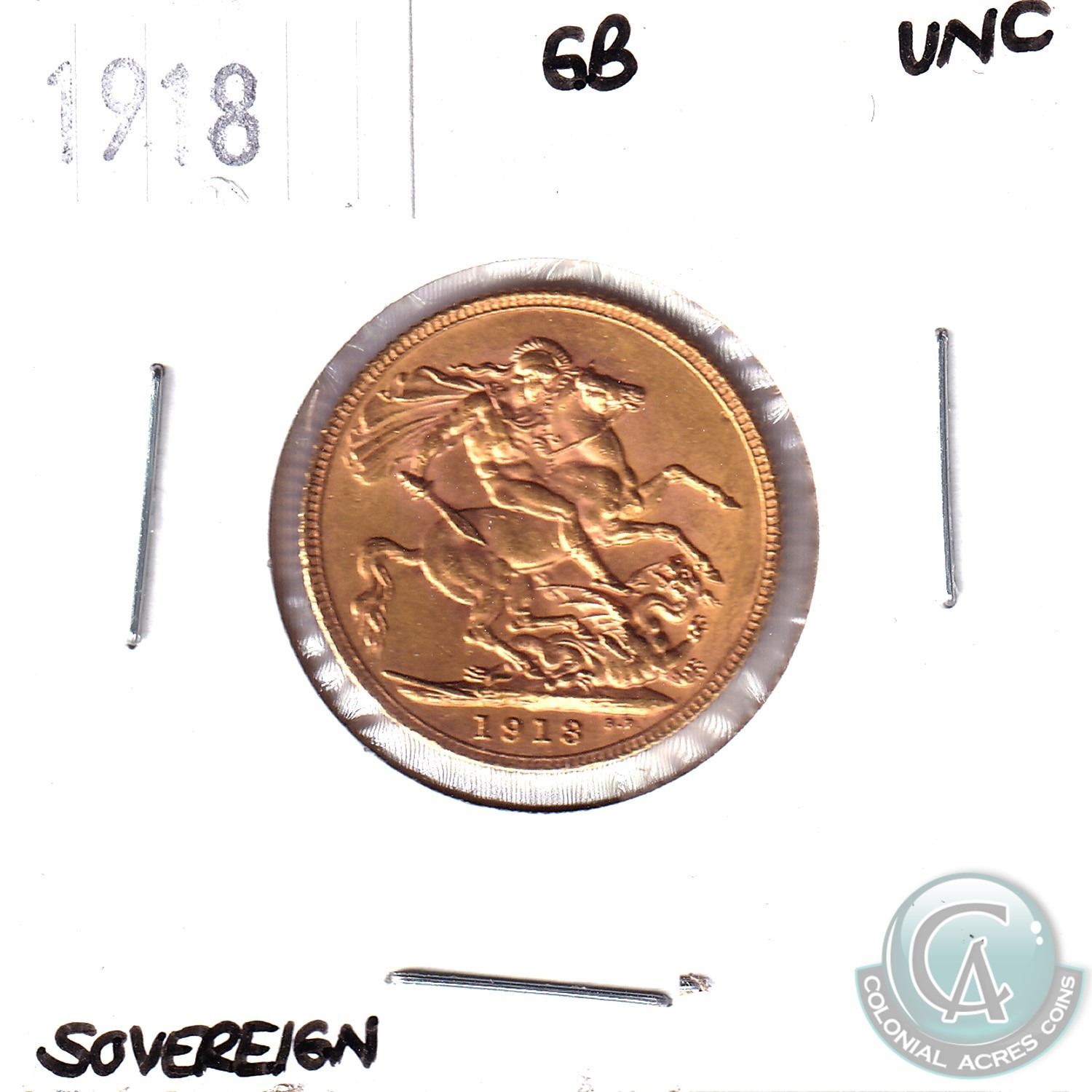1918 Great Britain Gold Sovereign Uncirculated. Contains 0.2354oz pure gold.