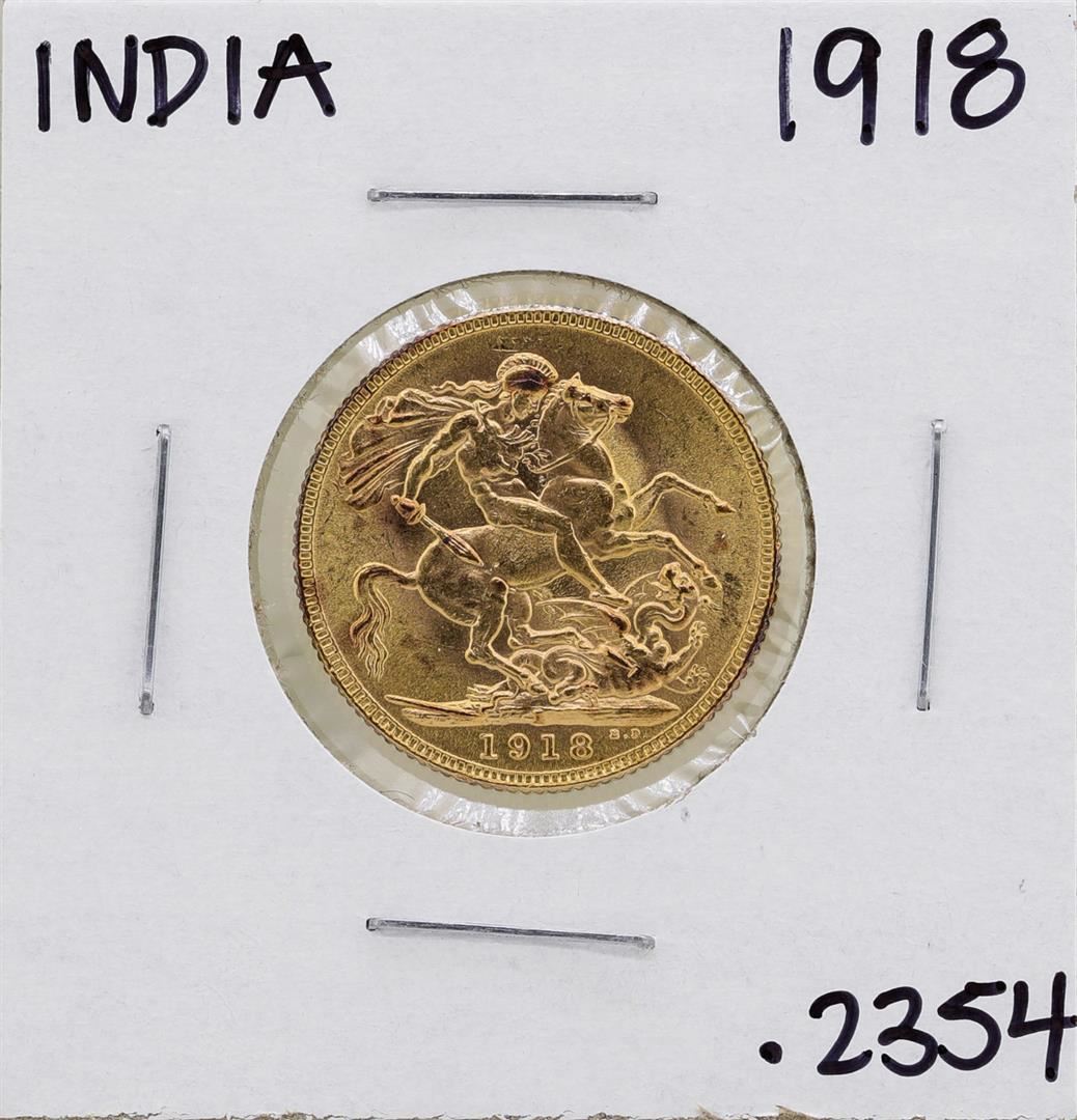 One 1918-I Indian Bombay Great Britain George Sovereign Gold Coin.