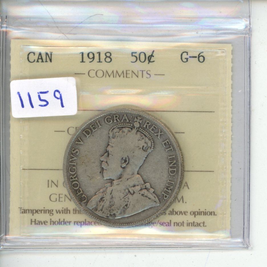 1918 ICCS Graded - Canadian Fifty Cent - G6