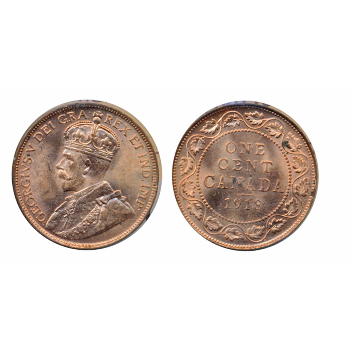 1918. ICCS Mint State-64. Red. Full red luster. Spots on reverse.