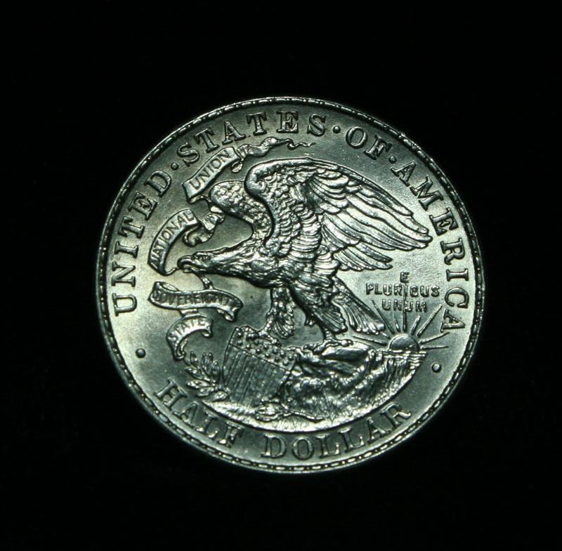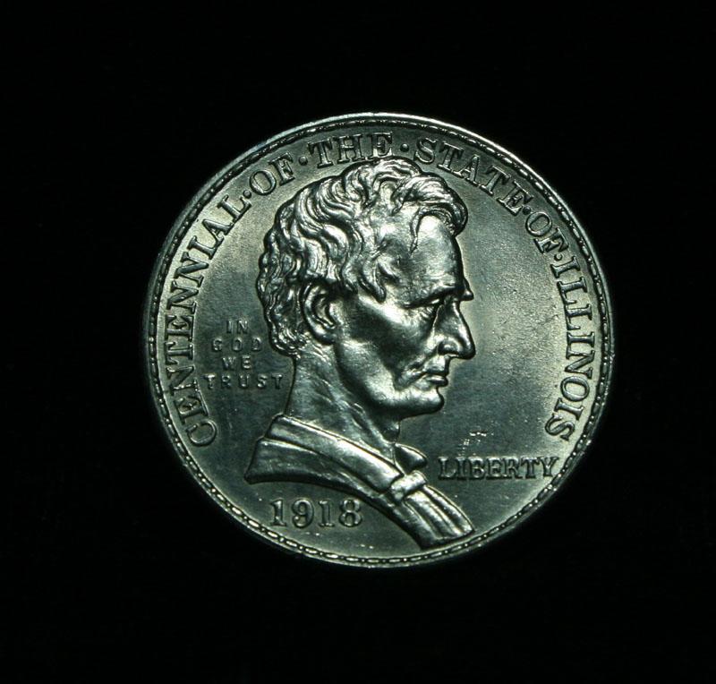 Nice White example, Good Eye appeal. It is interesting to note that the portrait of Lincoln on the Obverse shows him without a beard as he appeared when he was in Illinois. The Obverse was designed by George Morgan and the reverse one of John Sinniock's first designs. George Morgan was the Chief Engraver at the time of the US mint and Sinnock would be his successor, so two US Mint Directors designed this beautiful Commemorative. Points to check for wear include Lincoln’s cheekbone, jaw, eyebrow and the hair above his ear. On the reverse, examine the eagle’s breast feathers and the grass beneath its left claw. Coin World's Coin Values lists ms64 at $250 and The Wholesale Greysheet lists ms64 at $165. Estimated Value $200