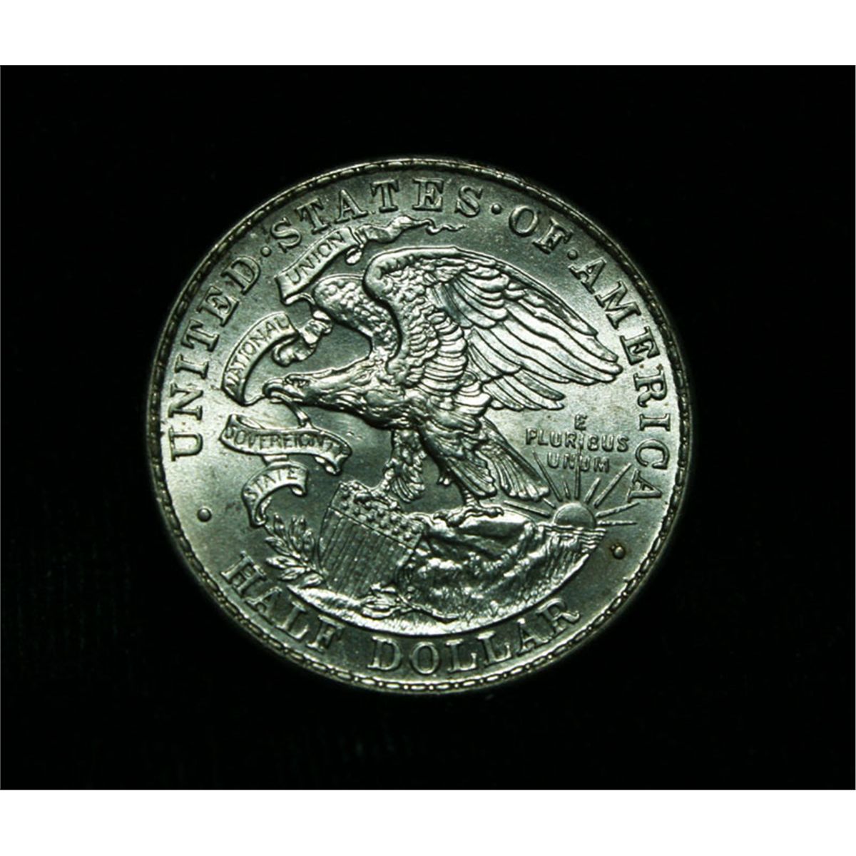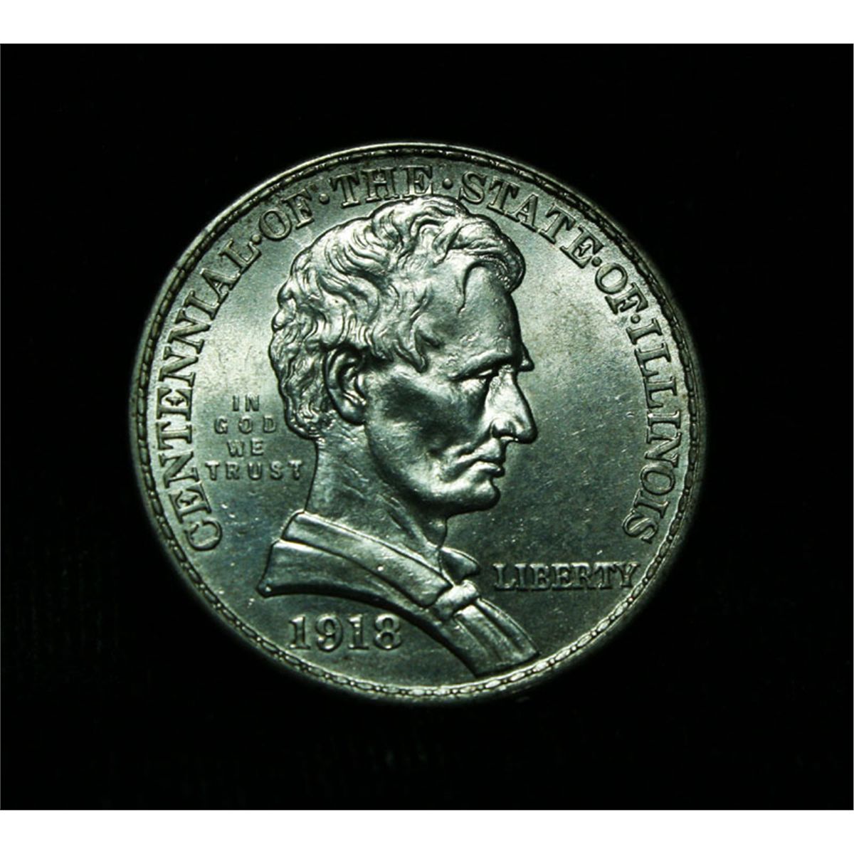 Blast White with a Very Strong Strike. Great Luster. A Superb example. It is interesting to note that the portrait of Lincoln on the Obverse shows him without a beard as he appeared when he was in Illinois. The Obverse was designed by George Morgan and the reverse one of John Sinniock's first designs. George Morgan was the Chief Engraver at the time of the US mint and Sinnock would be his successor, so two US Mint Directors designed this beautiful Commemorative. Points to check for wear include Lincoln’s cheekbone, jaw, eyebrow and the hair above his ear. On the reverse, examine the eagle’s breast feathers and the grass beneath its left claw. NGC's Price Guide lists ms66 at $830 and The Wholesale Greysheet lists ms66 at $700. Estimated Value $750