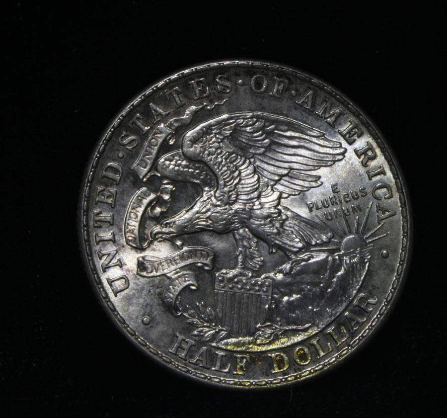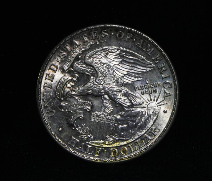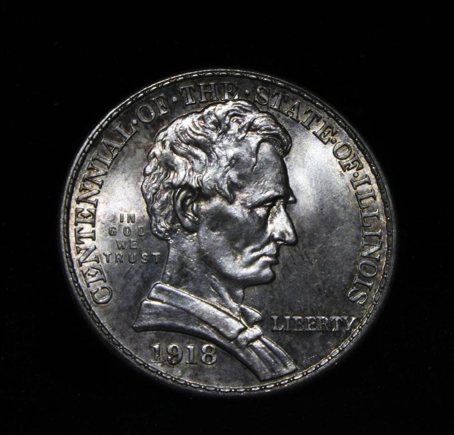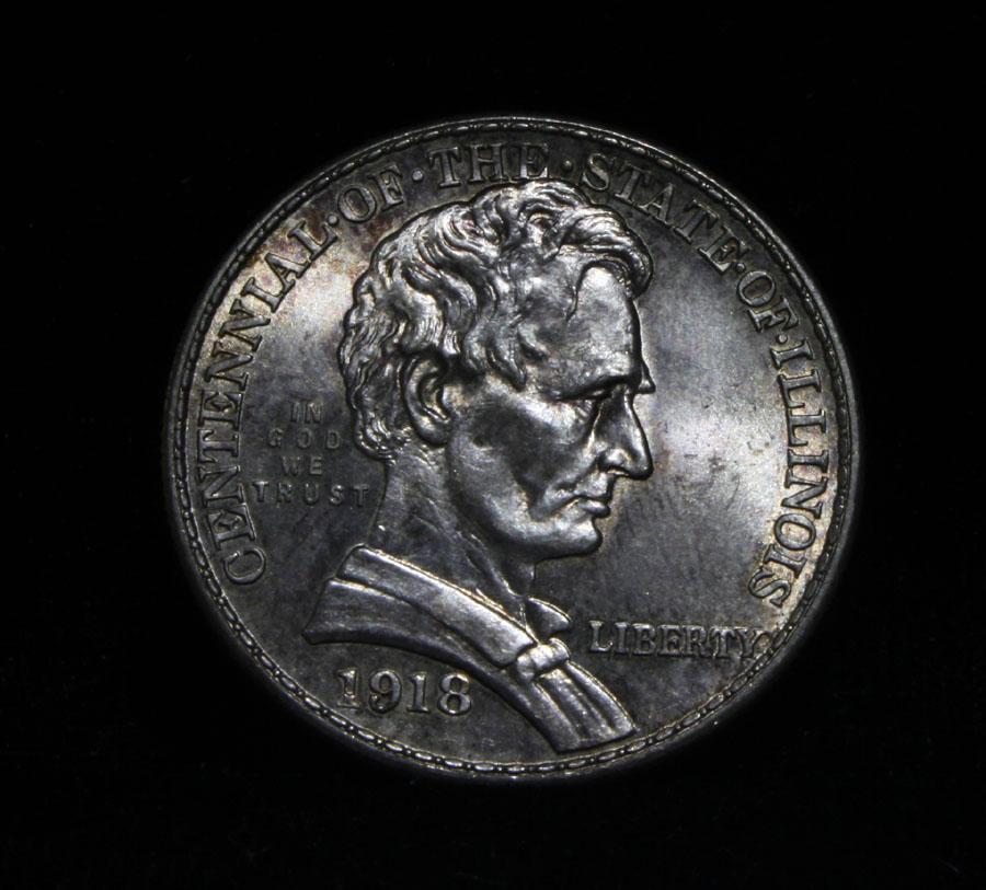 A beautiful All Original Never Dipped example of this beautiful Commemorative. Great Luster and Strike, Very pleasing to the eye with pastel toning. It is interesting to note that the portrait of Lincoln on the Obverse shows him without a beard as he appeared when he was in Illinois. The Obverse was designed by George Morgan and the reverse one of John Sinniock's first designs. George Morgan was the Chief Engraver at the time of the US mint and Sinnock would be his successor, so two US Mint Directors designed this beautiful Commemorative. Points to check for wear include Lincoln’s cheekbone, jaw, eyebrow and the hair above his ear. On the reverse, examine the eagle’s breast feathers and the grass beneath its left claw. Coin World's Coin Values lists ms66 at $800 and The Wholesale Greysheet lists ms66 at $675