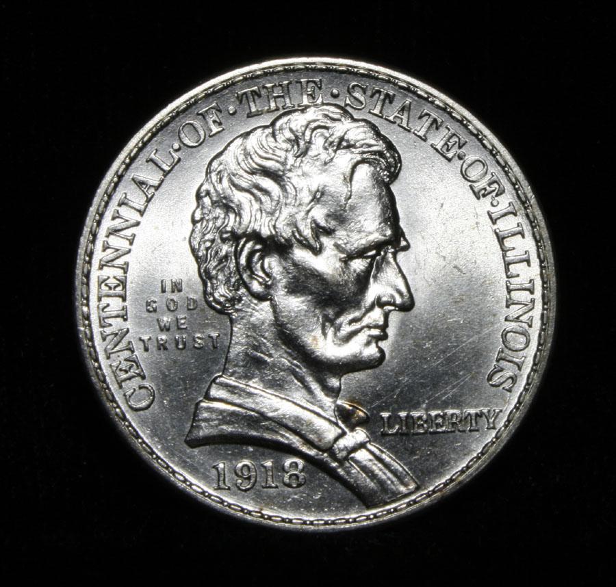 Blast White, All Original Never Dipped example of this beautiful Commemorative. Great Luster and Strike, Very pleasing to the eye with Great Luster. It is interesting to note that the portrait of Lincoln on the Obverse shows him without a beard as he appeared when he was in Illinois. The Obverse was designed by George Morgan and the reverse one of John Sinniock's first designs. George Morgan was the Chief Engraver at the time of the US mint and Sinnock would be his successor, so two US Mint Directors designed this beautiful Commemorative. Points to check for wear include Lincoln’s cheekbone, jaw, eyebrow and the hair above his ear. On the reverse, examine the eagle’s breast feathers and the grass beneath its left claw. Coin World's Coin Values lists ms66 at $800 and The Wholesale Greysheet lists ms66 at $675
