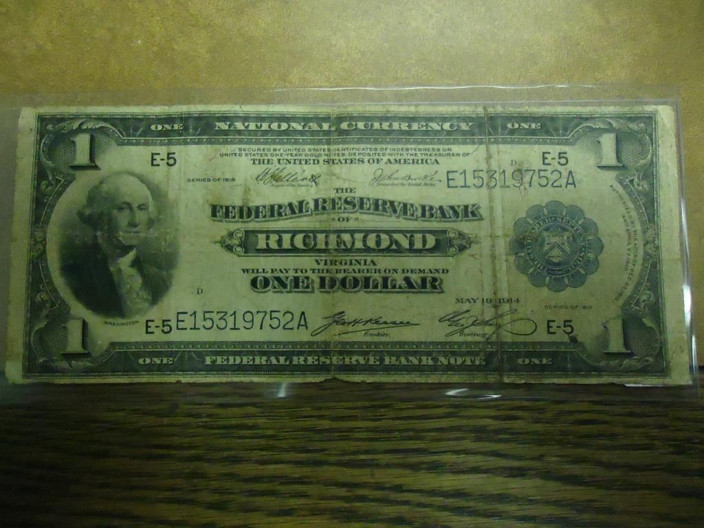 1918 LARGE SIZE $1 NATIONAL CURRENCY (RICHMOND)