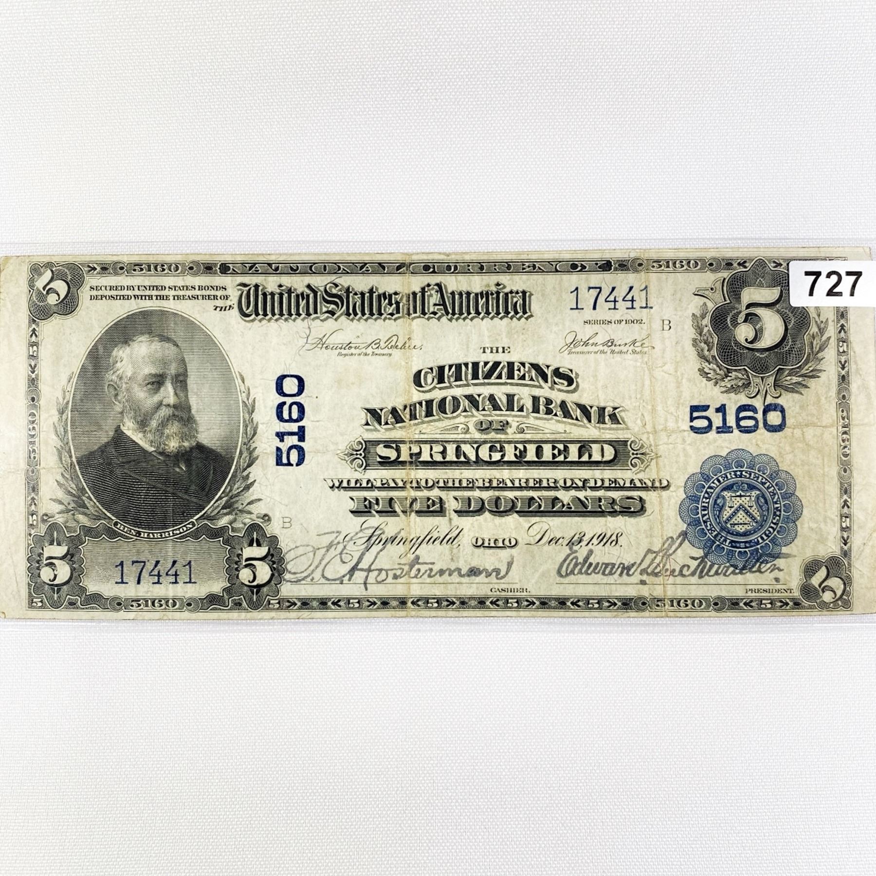 1918 LG $5 Springfield Bank, OH National Bank Note